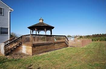 Super large 4 bedroom, 3 full bath farmette with 2 car garage, office, and in ground pool on 11+ acres!Center Hall Colonial layout with large open staircase flanked by a formal dining room and living room, as well as a den/office, full bath, laundry room and second staircase! Along the rear of the house is a large eat in kitchen with island counter and family room with wood burning fireplace. There is a slider off the family room leading to a large deck with gazebo overlooking an in ground heated swimming pool! Kitchen is equipped with dishwasher, gas oven with stove top, wood cabinetry and Corian-type counter tops. Full, large, finishable basement and a 2 car attached garage! Go up either side of the dual staircase. There is a large master bedroom with a master bath off the main hallway and three additional bedrooms with a second full bathroom on the opposite side. There is a balcony overlooking the kitchen eating area! The master bath consists of a garden Jacuzzi tub, stall shower, dual vanity sink!