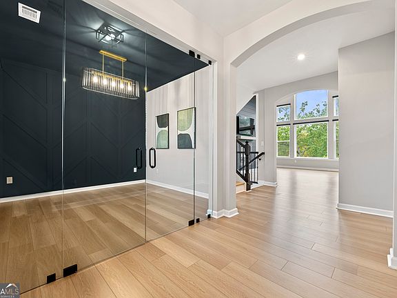 Welcome to 188 Greenbrier Way, a stunning modern residence located in the highly sought-after Great Sky community in Canton, Georgia, where luxury, comfort, and thoughtful design come together. This beautifully crafted home features four spacious bedrooms and three and a half bathrooms, including a private guest suite with its own bath, perfect for visitors or multigenerational living. From the moment you step inside, you'll be captivated by the open-concept layout that seamlessly connects the expansive living area, massive eat-in dining space, and chef's kitchen, anchored by an oversized island that's ideal for entertaining. Natural light floods the home through large windows equipped with ten motorized shades in the great room and along the stairways, while updated light fixtures and stylish accent walls add a sophisticated touch throughout. The home's interior is designed with both elegance and function in mind, featuring luxury vinyl plank flooring that flows throughout the main living spaces and hallways, with plush carpeting reserved for secondary bedrooms. A dedicated office with glass doors provides a quiet, light-filled workspace, and a secondary living room offers additional flexibility for a media room, playroom, or home gym. Every bedroom is equipped with ceiling fans for added comfort, with the exception of the owner's suite, which is designed as a peaceful retreat. Drapery in select rooms adds warmth and style, and the included washer, dryer, and refrigerator make this home truly move-in ready. Outdoor living is just as impressive, with a welcoming front porch perfect for enjoying morning coffee or relaxing evenings, as well as a screened-in deck that extends your entertaining space and features stairs leading to the fenced backyard. A built-in doggy door makes this home especially convenient for pet owners, and the beautifully manicured landscaping enhances curb appeal. The property also includes a three-car garage, offering ample space for vehicles, storage, or a workshop area. An open stair railing contributes to the home's modern, airy feel, while thoughtful design details throughout reflect contemporary style at its finest. One of the most exciting features of this property is the approximately 1,167-square-foot walkout unfinished basement, offering incredible potential for customization. Already plumbed for a full bathroom and accompanied by a professionally designed blueprint created by a well-known HGTV star, this space is ready to become the ultimate home theater, gym, in-law suite, or entertainment area. Set within the picturesque and amenity-rich Great Sky community, this home offers access to scenic walking trails, resort-style pools, tennis courts, and a welcoming neighborhood atmosphere - all while being just minutes from shopping, dining, and top-rated schools. With a seamless blend of modern luxury, smart upgrades, and future expansion potential, 188 Greenbrier Way is more than a home - it's a lifestyle. From its spacious layout and high-end finishes to its thoughtful outdoor spaces and customizable lower level, this property offers the perfect balance of comfort, sophistication, and opportunity.