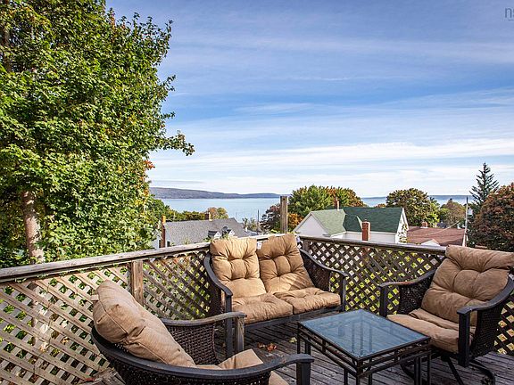 Well maintained and thoughtfully updated, this lovely century home offers sweeping views of the Annapolis Basin from several vantage points and features beautiful low maintenance perennial gardens for effortless seasonal colour. Two generous decks let you enjoy the scenery year round - the lower deck captures the Basin view while the upper deck is ideal for BBQs and outdoor dining. Off the primary bedroom a 14x8 balcony with a roll out awning provides another perfect retreat to take in the waterfront vista. Inside you will find plenty of recent updates and charming character details. A beautiful propane fireplace efficiently heats the entire home, complemented by warm hardwood floors. Recent upgrades include roof shingles, spray foam insulation in the foundation, blown in insulation in the walls and attic, and complete rewiring within the past 15 years. The kitchen, freshly redone in 2025 with a welcoming coffee nook, is truly the heart of the home. Major appliances are included and are all under four years old for peace of mind. The fully fenced yard is ideal for children and pets, and the property boasts two driveways - the upper one perfect for storing a camper, boat, extra vehicles or welcoming visitors. A spacious 14x26 garage with poured concrete floor and full wiring offers excellent workshop or storage space. Combining modern efficiency with timeless charm and spectacular views, this inviting property delivers comfort and lifestyle in a sought-after community.