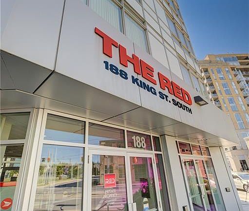 Location, Location, Location. This beautiful & modern apartment, is located in the boutique-style building "THE RED", right in the heart of Up Town Waterloo. Perfectly located & is suitable for retirees, first time home buyers or savvy investors. This unit offers a stylish and convenient lifestyle in one of the city's most desirable locations. Unit has M/bdrm with private 3 pc ensuite bath and his & hers closets. Ensuite laundry and a 2nd 4 pc bathroom, modern kitchen with SS appliances, granite counters and stylish backsplash. A bonus & versatile den that is prefect for extra space use can be home office, reading nook or extra living space. Unwind in your private balcony for afternoon teatime break or morning coffee. Laminate stylish flooring throughout, closets & large windows. Modern living at the center of Uptown Waterloo Social Life, facing the famous Bauer Kitchen, Vincenzo & Allen St LRT station. This unit has assigned use of locker for added storage needs. 4 photos are virtually staged. The upscale building offers party room for friendly gatherings, equipped exercise room and roof top patio with BBQ for every day's modern life style. Near all amenities, shopping, transport, restaurants, trails & a short drive to both Waterloo Universities & Waterloo Park plus the convenience of the (LRT) Light Rail stop infront of the building. Well maintained & managed. Shows AAA