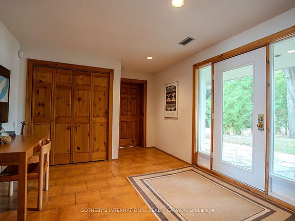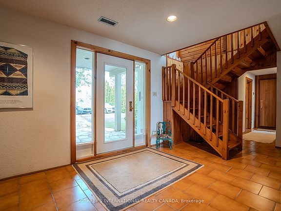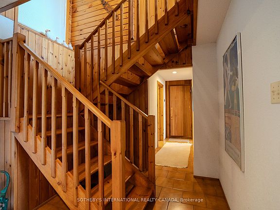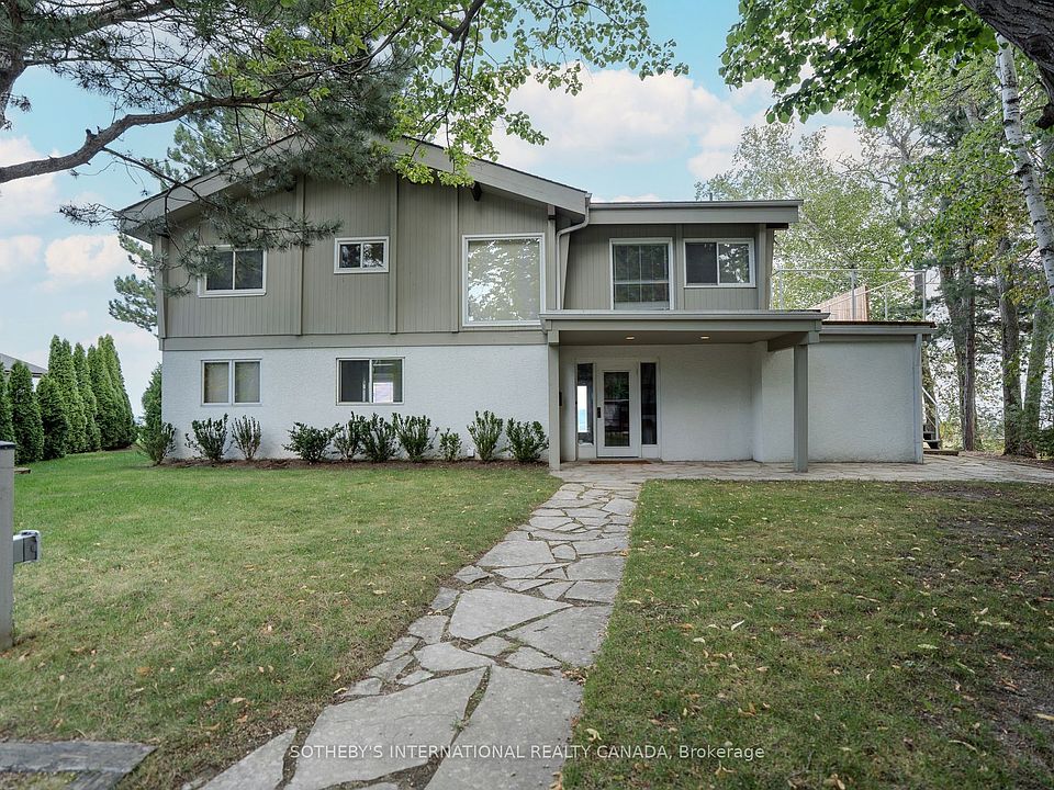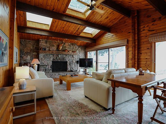 FALL/SKI SEASONAL RENTAL Available for the very first time, this family-owned year-round chalet offers the rare opportunity to enjoy a seasonal lease in the heart of Blue Mountain. Built in 1976 and lovingly maintained, the property showcases timeless craftsmanship with warm pine finishes, soaring cathedral ceilings, and expansive windows that frame spectacular views of the water and beach below.Thoughtfully designed with a reverse floor plan, the chalets main level features three spacious bedrooms. The primary suite is a true retreat, complete with a king bed, built-in cabinetry and bookshelves, and walls of glass overlooking the lake. A private ensuite bath completes this inviting space. Two additional bedroomsone offering a queen bed and its own vintage sink, and another with two twin beds and direct water viewsshare a four-piece bathroom highlighted by a classic 1970s sunken tub. The main floor also features a built-in cedar sauna, offering the perfect place to warm up and unwind after a day on the slopes. A welcoming foyer, large closet, and convenient mudroom with side entrance provide ample storage for skis and winter gear.Upstairs, the home opens to an expansive family room with cathedral ceilings, wood beams, skylights, and a striking stone fireplace (decorative only) that creates a cozy ambiance on snowy evenings. The adjoining dining area offers warmth and charm, while the kitchen blends modern function with vintage character, showcasing stainless steel appliances, original decorative tiles, and direct access to the generous waterside deck. Perfect for entertaining, the deck features a gas BBQ and sweeping views, allowing families to gather and relax while enjoying the natural beauty of the Blue Mountain area.Ideally situated, this retreat is just minutes to Craigleith Ski Club (approx. 6 minutes), Alpine Ski Club (approx. 7 min), and Blue Mountain Village and ski slopes (approx. 10 min), making it the perfect base for an active seasonal lifestyle.