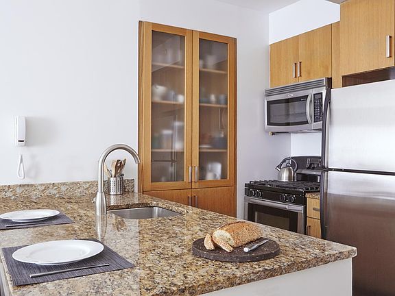 Our luxury rental tower features floor to ceiling windows, spectacular views, light oak hardwood floors, modern open kitchens including stainless steel appliances and granite countertops. Building amenities offer 24-hour doorman, valet services, wireless internet capabilities, fitness center with yoga/Pilates studio, rooftop sundeck and media/billiards lounge. Studio, 1BR and 2BR apartments are available.