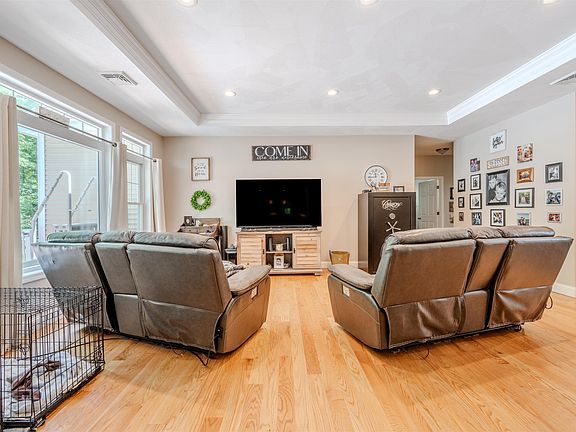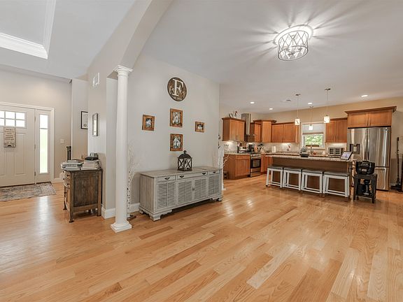 Welcome to your dream home! This stunning 4-bedroom ranch, situated on a serene 1.3-acre lot, offers the perfect blend of luxury and comfort. As you step inside, you'll be greeted by an open concept floor plan with 9-foot ceilings, hardwood floors, and recessed lighting that create a warm and inviting atmosphere.The heart of the home is the gorgeous kitchen, boasting granite countertops, stainless steel appliances, and ample cabinet space. The first floor laundry room adds convenience to your daily routine. The spacious living areas feature a tray ceiling, enhancing the sense of space and elegance.The master suite is a true retreat, complete with a full bath, a separate shower, and a generous walk-in closet. The additional 3 bedrooms are well-appointed and share a beautifully designed full and half bath. Step outside to your private backyard oasis, where you'll find an above-ground pool off the deck, perfect for summer relaxation and entertainment. The covered deck offers a comfortable spot to unwind while enjoying the peaceful view of the wooded backyard, ensuring your privacy.With central air conditioning to keep you cool during the warmer months, this home truly has it all. Don't miss the opportunity to make this exquisite ranch-style home your own! Hot tub to stay. Showings start at open house on 6/8 and 6/9 from 12-2pm.