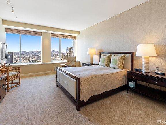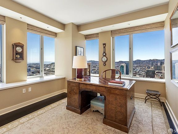 Located on one of the highest floors of the St. Regis Hotel, with custom designer improvements by The Wiseman Group, Residence 34D offers the largest square footage of any two-bedroom floor plan in the tower. Showcasing a glass-walled terrace and sweeping city and Bay views from its prized corner position, the residence features floor-to-ceiling windows that fill the home with natural light. The bright, glass-walled kitchen is outfitted with top-line appliances and Poggenpohl cabinetry. The primary suite features oversized western windows with limestone benches, a large walk-in closet, and a marble-clad bath, while the en-suite guest bedroom boasts two walls of windows and Bay views. Interior amenities include a stylish powder bath, concealed dry bar, motorized dual (solar and cloth) shades, sophisticated lighting, in-home laundry, and triple-zone air conditioning. St. Regis' five-star amenities include 24/7 concierge, valet, butler, in-room dining, and world-class security. Residents enjoy exclusive access to a private valet and entrance, fitness center, lap pool, landscaped terrace, restaurant, lounge, and housekeeping, delivering the best in hotel hospitality and condominium living.