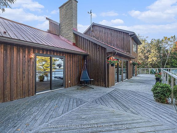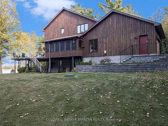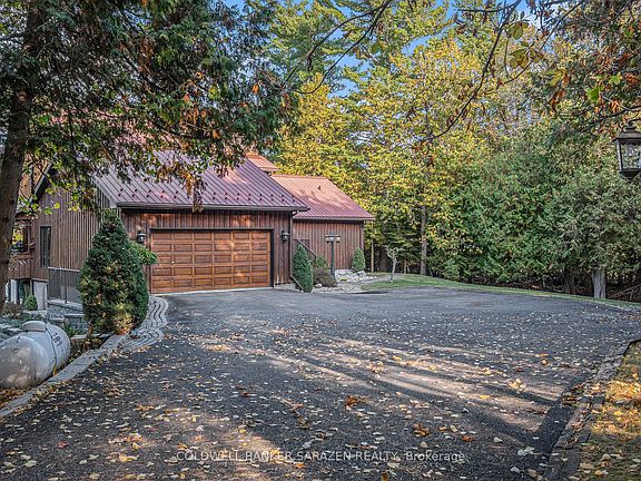 Tranquility awaits you! A short drive from Kanata where you can be enjoying a coffee on your beautiful large deck at your home on this gorgeous lot on the Ottawa River. The heart of this 2-Storey home boasts a Stone Fireplace from Floor to Ceiling! The kitchen boasts Granite counter tops and island with built-in JennAir Stove Top and provides access to large 3 season sunroom. Formal dining area with full set of patio doors also gives access to deck. Primary Bedroom on main level has 4 piece ensuite with heated floors, and a patio door entrance to the wrap around deck. The second Storey overlooks the living room and comes with 2 bedrooms and a bathroom. The finished basement Recreation Room with walk-out access has full brick wall with wood stove to cozy up to. Loads of storage! Your own woodworking shop in basement with direct access to outside! Plenty of room on your 50 foot deck to entertain guests! Large dock will accommodate your cruising boat and when the days boating is completed simply drive into the cradle and let the rail system pull your boat into your own Boat House. An oversized 2 car garage gives access to the home for easy entrance through a foyer into the kitchen. Property also includes a separate 3+ car garage with 2 large bay doors and a room off to the side with a small loft, used as storage or could be converted into a bunkie. A must see for anyone looking for that gorgeous view, direct water with boat house and dock, swimming, privacy... all of that and an easy commute to Ottawa! An adventurers dream you are a short walk away from the Morris Island Conservation Area which offers walking trails through diverse natural environments including forests, wetlands, and shoreline areas and minutes to the Ontario snowmobile trail system which leads directly to Quebec trail system.