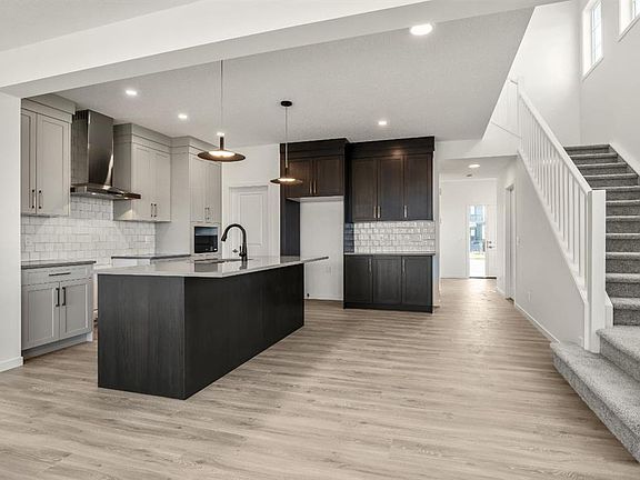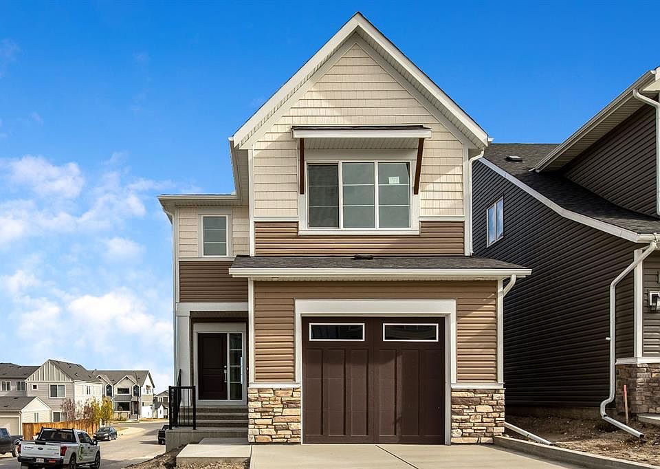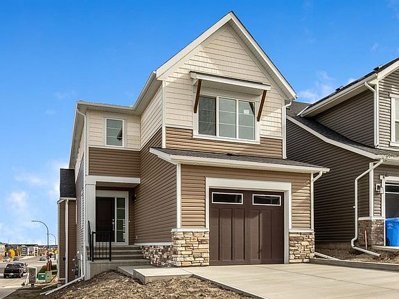 Your dream home and opportunity await! This BRAND NEW gorgeous property is situated on a traditional extra large corner lot! Offering over 2,200 sq ft above grade. As you approach you will notice the great curb appeal and stone detail. This well thought out design offers comfort and practicality. The bright main floor has hard surface flooring throughout, soaring 9' knockdown ceilings, a convenient attached garage and mudroom. The focal point of this home is the chef inspired two tone kitchen, with stunning quartz counters, timeless tile backsplash, custom slow close cabinets that reach to the ceiling, upgraded stainless steel appliances including a chimney style hood fan and a gas range. Adjacent to the kitchen is the bright dining room with extra large patio doors that open to your own private deck with a gas line and VIEWS! The dining room seamlessly connects to the living room making it ideal for entertaining. This room is flooded with natural light and showcases a fireplace centered between two windows. Completing the main floor is a private powder room by the front entrance and a well sized office for those who work from home, or as a homework zone, or a potential play room. When you head upstairs you will notice the elegant railing, more windows drawing in that natural light, and an open to below creating an airy feel. You are then greeted by a central bonus room with arch details on each side adding sophistication to the space. Two well sized bedrooms and a nicely appointed 4 piece bath with quartz counters are on the one side. Where the spacious primary retreat is on the opposite side. Offering a substantial room with a walk in closet and a spa inspired ensuite including dual sinks, quartz counters, a large soaker tub, separate tiled shower and a private water closet. A convenient upper laundry room completes this level. The WALK OUT basement with additional side entrance is a blank canvas and has plenty of potential. It is complete with all the rough ins needed for a basement suited (subject to approval and permitting by the city), including a bathroom rough in at the back, a laundry rough in for stacked laundry under the stairs, and the rough ins for a galley style kitchen on the opposite side of the stairs. This home also has two additional parking stalls at the rear of the home making it possible to have an additional double detached garage(subject to approval and permitting by the city). This home has designer lights throughout, upgraded plumbing, and the quality and craftsmanship Calbridge Homes is known for. Enjoy peace of mind with New Home Warranty as well as front and side landscaping included! Sage Hill has plenty of walking paths, scenic ravine, open greenspaces, shopping, restaurants, and easy access to major roads like Shaganappi Trail, 144 Avenue, and Stoney Trail. Schedule your private tour today!