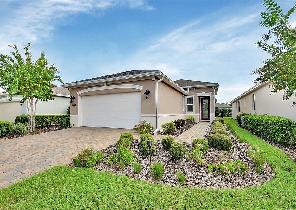 This move-in ready 2 bedroom, 2 bathroom plus Office/Den Azalea home is Light & Bright! Create delicious meals in the chef-designed kitchen – complete with White 42"cabinets, upgraded pendant lighting, a breakfast bar, upgraded tile backsplash, including tile on the kitchen island! The stainless appliances were replaced in 2022, and the walk-in pantry has plenty of storage. Inside, the laundry room offers storage cabinets. The spacious owners suite has TWO walk-in closets offering **California Closets** and a generous en suite bathroom featuring a walk-in shower with upgraded tile. Guest bedroom closet has California Closets as well. Entertain your guests outdoors on your extended Paver patio, surrounded by the beautiful wrought iron fencing and high privacy hedge ~ You will hardly know you have rear neighbors! As a resident of this Active 55+ gated community, you will enjoy the finest in amenities, including your very own Private clubhouse, dining, bar, game rooms, fitness room, access to 3 resort-style pools, lighted tennis and pickle ball courts, bocce ball, library, crafts, and travel clubs and live entertainment. HOA includes: TOTAL lawn & shrub care, HD Cable TV, with DVR, High-speed internet, reclaimed water irrigation and access to all community amenities.