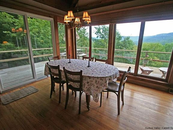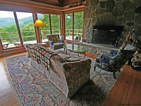 ROXBURY RUN CHALET WITH PANORAMIC VIEWS AND PRIVACY ON 5.3 ACS: This charming cedar shingled contemporary is the iconic Roxbury Run style home, located on a dead-end cul-de-sac with riveting distant mountain views and exceptional privacy. From the time you walk in the front door, your gaze is drawn to the dramatic wall of glass in the cathedral-ceilinged Great Room, as you experience those views, complimented by the large raised hearth fieldstone fireplace off to one side. The dining area also features that same long view, and it is even available from the recently renovated galley kitchen. Leaving the living room, down the hall to the left are two comfortable bedrooms, with generous closet space, and a later addition of a large Berber carpeted family room--also built to enjoy those mountain views off the front deck. The Master Suite is on its own upstairs, featuring a cathedral ceilinged bedroom with many storage built-ins and closets as well as a huge master bath with both a jacuzzi tub and a separate shower. If you are worrIed about storage space--don't--there is an additional large walk in closet off the bathroom and many clever storage spaces added to the general layout throughout the home. Let me also mention the extensive wrap around deck that surrounds three sides of the home--in the summer you will want to spend all your time there, soaking in the view. And another, but different plus, for those of you who dread going into those nasty basements, not this one! The owners added a nice plywood floor long ago, and the dry basement easily can be accessed to maintain the utilities, as well as used for some storage. It is a nice bonus that this home also includes membership in the Roxbury Run pool and tennis courts, an amenity now worth $5,000. Also, there is an adjacent 2.3 acre lot available if you would like more land. Don't hesitate on this property, check this out, it is exceptional, needs a little updating, but well worth the effort for the unique setting.