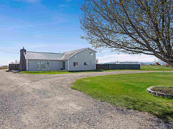 Experience peace, quite, and an astounding view of the mountains in this country home on 3.99 acres! Build your dream shop, bring the cattle, horses & all your critters! Inside you'll find 4 large bedrooms and 2 bathrooms, the Primary bedroom has 2 walk-in closets and a large bathroom with separate shower and jetted tub. The kitchen includes a walk in pantry and a large breakfast bar that could seat the family. In the living room you will find high vaulted ceilings with a cozy custom rock fireplace. Just outside the sliding door enjoy a relaxing covered patio. Outside you'll find a large fully fenced yard and plenty of space for out door activities. The oversized 2 car garage features an adorable one bedroom one bathroom apartment with a balcony to enjoy the view! The garage has 220 electrical outlet. The field is currently planted to hay. Pump and handlines are included. Short 2 mile ride to town. One land split may be available, water shares included! Call your favorite agent today before this one is gone!