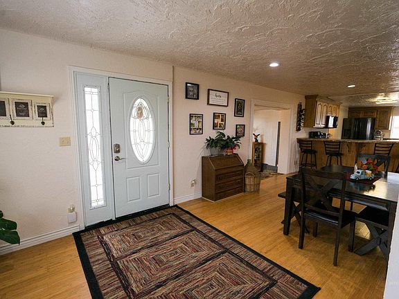 Bring the family and all the animals to this cute country home on 3.99 acres just 2 miles outside of town. Inside you'll find 4 large bedrooms and 2 bathrooms, a huge breakfast bar that could seat the whole family and many updates throughout. The living room features high vaulted ceilings, a custom rock fireplace and a cozy covered patio just outside the sliding door. Master bedroom has 2 walk-in closets and a large bathroom with separate shower and jetted tub. Outside you'll find a large fully fenced yard and plenty of space to put in a garden or enjoy those summer BBQ's on the big patio. Did I mention the oversized 2 car garage?! It features a nearly finished separate living space with it's own bathroom. The field is currently planted to hay. Pump and handlines are included. Call your agent today before this one is gone!