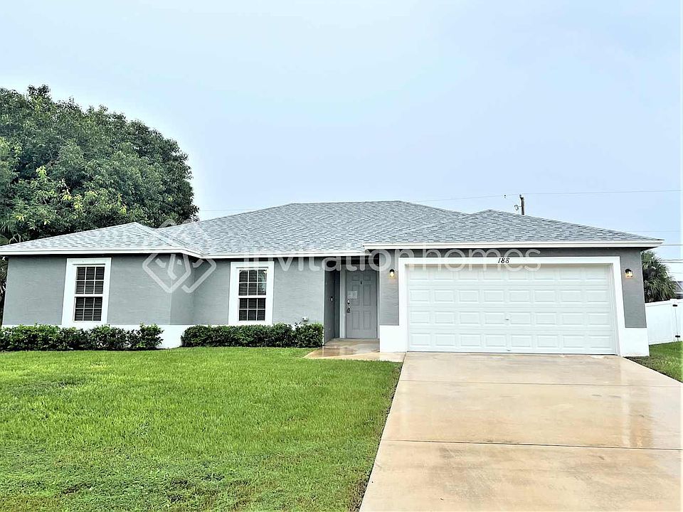 Home Features and Amenities: Air Conditioning, Fenced Yard, Garage, Kitchen Island, Long Lease Terms, Open Floorplan, Patio, Pet Friendly, Primary Bedroom on Main, Recessed Lighting, Single Story House, Smart Home, Stainless Steel Appliances, Tile, Walk in Closet, W/D Hookups, and professionally managed by Invitation Homes.