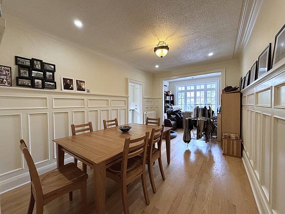 - Elegant dining room featuring charming decorative moulding