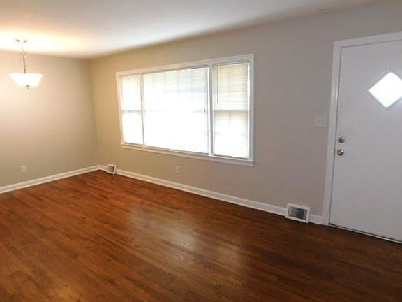 Spacious brick ranch with living/dining room open plan. Kitchen with lots of cabinets, Granite counters, all appliances (microwave, dishwasher, gas stove, refrigerator) and built-in panty. Two spare bedrooms with ceiling fans. Full hall bath with tiled tub/shower combination. Master bedroom with ceiling fan and attached half bath. Laundry nook with stackable washer & dryer included. This property has a bonus room with a decorative fireplace and access to the side covered carport and rear deck with table, four chairs and umbrella. Flat fenced backyard with storage shed. This property also have a lovely front yard. No carpet. Landscaping included in the rent. Parking on the driveway and covered carport. Convenient access to I-75, I-285 and 120 Loop. Close to Braves Stadium, Truist Park/ Dobbins AFB, Galleria and Cumberland areas. No aggressive dog breeds.