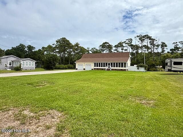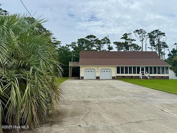 This is an ACT NOW opportunity. 188 Sheldon Rd. is a unique property located at Harker's Island. It's what you would call an Island lovers dream. With over 2000 sq feet of living space, a 3 door garage, 2nd level balcony, screen in front porch and open deck back porch, all the parking you could want for cars, boat etc. plus no HOA. Inside on the downstairs level you will find two bedrooms and a full bath with a large kitchen/dining combo and an oversized living room. The spacious upstairs has one bedroom, one full bath and two large flex spaces. This property backs up to the National Park & Core Sound Waterfowl Museum so, you will have very quiet neighbors.