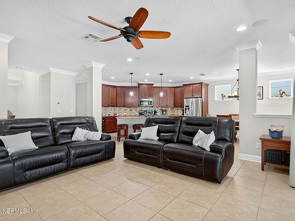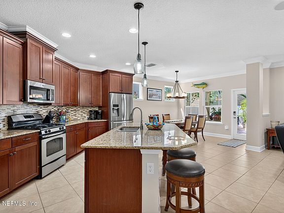 This 3BR/2.5BA David Weekley home in sought-after St. Johns County offers an open-concept design with a gourmet kitchen, oversized island, and seamless indoor-outdoor living. The screened paver lanai with surround sound, dining area, and fire pit is perfect for year-round entertaining. Enjoy world-class Nocatee amenities—resort-style pools, waterparks, pickleball, trails, dog parks, and more—just minutes from top schools, dining, and shopping.