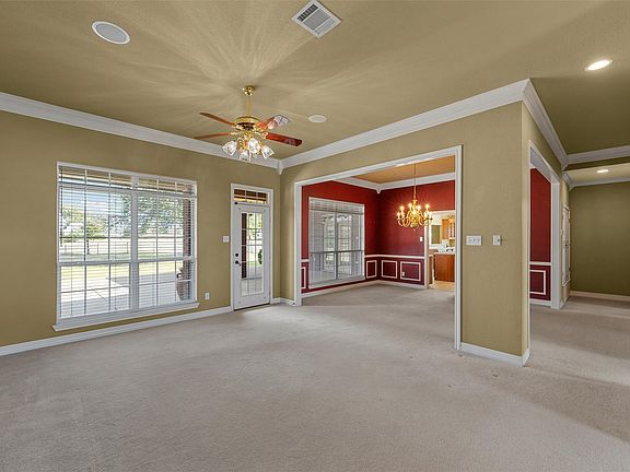 Welcome home to a private 10.31-acre retreat where luxury, comfort, and thoughtful craftsmanship come together just beyond the city limits. From the moment you enter the circular driveway, framed by mature trees, this property feels like a destination—quiet, refined, and rich with amenities for both everyday living and exceptional entertaining. Inside, the home unfolds with warm sophistication. The den, accented by a coffered ceiling and gas-log fireplace, is a true gathering space enhanced with surround sound extending through the office, formal living, primary suite, bath, and out to the patio. The gourmet kitchen offers custom cabinetry with under-lighting, a five-burner gas cooktop, updated appliances, trash compactor, mini-fridge, island with power, and a walk-in pantry with automatic lighting. A dedicated bar with sink creates the perfect spot for hosting. The primary suite is a sanctuary with separate vanities and closets, a jetted tub, and a walk-in shower. Secondary bedrooms share a spacious Jack-and-Jill bath with extended dual vanities. A custom office with built-ins, and a beautifully detailed mudroom with slate floors, add charm and function. Outdoors, the property shines with a covered patio, ceiling fans, security floodlights, Christmas-light wiring, an in ground trampoline, and fenced yard. The acreage offers approximately 1,120 ft. of road frontage along Twin Bends and Old Crawford Road. The metal shop features concrete floors, double garage doors, water, electric, exterior lighting, RV storage, and an insulated, climate-controlled upstairs with concealed storage. The fenced poultry coop has electric, water and nesting boxes. With two HVAC units, a generator-ready electrical setup, propane tank, sprinkler system, and a roof replaced in 2013, this property blends beauty with durability. Located in Crawford ISD and easy access to Hwy 6, Waco, and Valley Mills, this is luxury country living at its finest—serene, spacious, and thoughtfully curated.