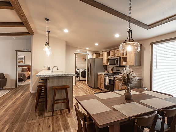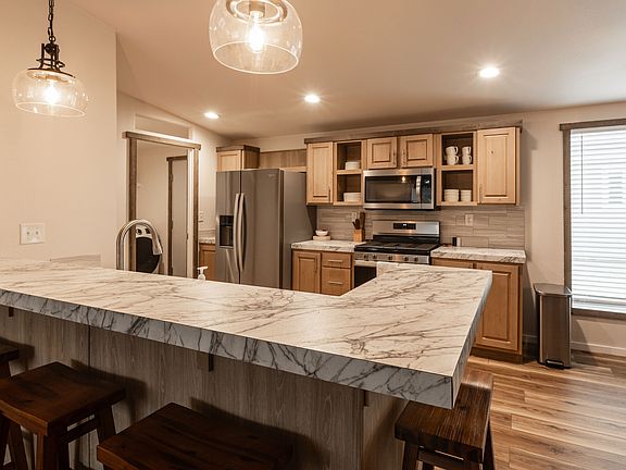 Step inside this fully furnished home to discover a thoughtfully designed open floor plan featuring a brand-new kitchen with marble-style countertops, stainless steel appliances, and warm wood cabinetry. Exposed ceiling beams, elegant pendant lighting, and luxury wood-look flooring create a seamless blend of contemporary and rustic charm.