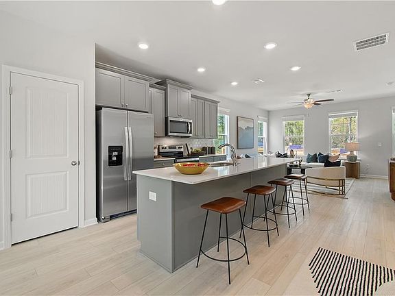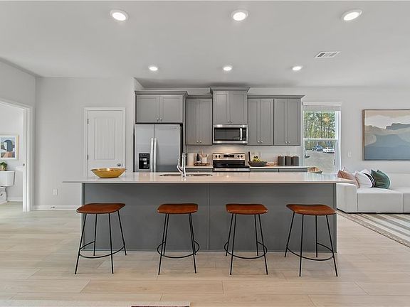 Discover this impressive three-story townhome featuring 3 bedrooms and 3.5 baths, plus a spacious game room perfect for entertaining. The ground level includes a large game room, a half bath, and access to a covered back patio. On the second level, enjoy a beautifully designed kitchen with ample cabinetry, a large island, Quartz countertops, a tile backsplash, and a full suite of stainless-steel appliances. The kitchen overlooks the breakfast and family rooms, making it ideal for gatherings, and there’s a convenient powder room on this level. The third floor is your private retreat, with a roomy Owner’s suite featuring tray ceilings, dual walk-in closets, and a luxurious spa-like bathroom with a double vanity. Two additional spacious bedrooms, pre-wired for ceiling fans, and a full bathroom are also on this level. The laundry area includes a washer and dryer. Additional features include a one-car garage with an opener, a one-car parking pad, and window screens and blinds throughout. Conveniently located just 2.5 miles from the airport, 9 minutes from downtown Atlanta, and 12 minutes from the College strip and Mercedes-Benz Stadium. You’ll also be close to the future Aerotropolis and Airport City, with excellent access to major highways, Marta, and the Atlanta Beltline Eastside Trail. Monticello offers luxury townhome living with a low-maintenance lifestyle. *Photos are representative and may not reflect the actual townhome being built.* Please note: If the buyer is represented by a broker/agent, DRB REQUIRES the buyer’s broker/agent to be present during the initial meeting with DRB’s sales personnel to ensure proper representation. If buyer’s broker/agent is not present at initial meeting DRB Group Georgia reserves the right to reduce or remove broker/agent compensation.