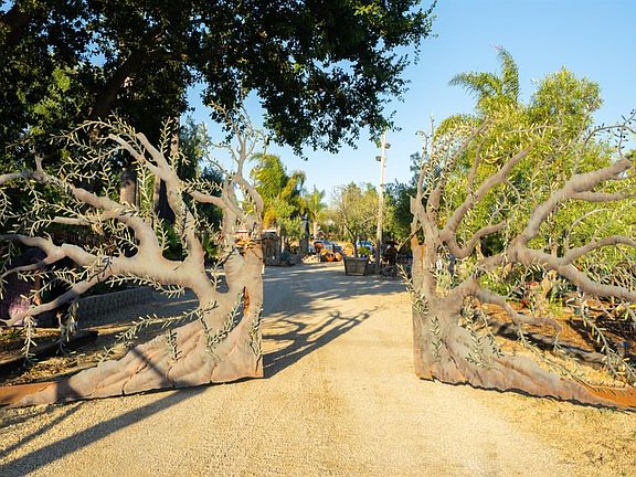 Pinot noir vineyardRanch-style bungalowMature olive treesSparkling water featuresRiding arenaTack and feed roomsBocce ball