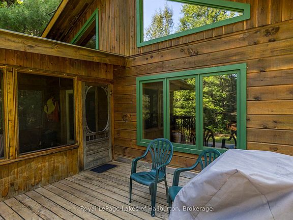If you dream of being off-grid, on a dead-end road then check out this fascinating hideaway just over 2 hrs north of Toronto. This turn-key Colonial Concepts white pine, dovetail log cottage was built in 2010. It exudes pride of ownership. Located on a gentle rise overlooking a gentle stretch of the river. Exceptionally private. 250 ft of riverfront and 2.1 AC with no neighbours on. The Irondale River is a popular canoe and small boat route between the 3 Brothers Waterfalls and Furnace Falls. It is quite easy to portage 3 Brothers and paddle right into downtown Kinmount on the Burnt River. 3 Brothers Waterfalls is one of the most spectacular settings in Haliburton County, a true hidden gem. There is no public access to the Falls. The 1021 sq foot main cottage has 2 bedrooms and an open concept kitchen and living room with a lovely screen room and a 4-piece bath. The cottage comes completely furnished. Just few steps away is the original 16' x 12'-8" cottage now used as a bunkie and offers another 203 sq ft of people space. The main cottage is powered by a solar panel system with a manual backup generator. Propane stove top. Full pre-list inspection of building, septic and solar systems are available. The wood stove is WETT certified. UV/filtered water just tested perfect. New Propane GPS tank installed fall 2025 and propane system fully inspected. The lot was just professionally cleaned up by licensed arborist fall 2025 to improve views and solar exposure. Currently 3-season but can be upgraded to year-round use although the road is typically not open in winter. Hardy types will snowshoe or ski in. ATV/sleds are used as well. Located in a nice enclave of 25 seasonal cottages. An active private road assoc for $250 per yr. Located on a dead-end road with 2 properties past. 10 mins east of the quaint village of Kinmount and its amenities. 30 mins to Minden, Bobcaygeon and Fenelon Falls. Click on the Virtual Tour and explore this lovely white pine, dovetail log cottage.
