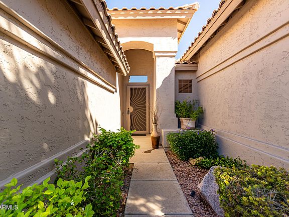Look no further! This wonderful 3 bed, 2 bath residence is for you! Great curb appeal, a manicured landscape, and a 3 car garage are just the beginning. Inside you will find a spacious dining & living area featuring high ceilings w/crown moulding, plush carpet, and neutral palette. The family room showcases travertine stone fireplace to keep you warm & cozy. The gourmet kitchen comes equipped w/ample cabinetry, granite counters, tile backsplash, a pantry, SS appliances, and a two-tiered island. The primary bedroom showcases direct outdoor access, a full ensuite w/dual sinks, and a walk-in closet. Don't forget about the quaint den w/built-in bookshelves and plantation shutters! Lastly, the backyard includes a covered patio, an outdoor fireplace, and a refreshing pool! Act now
