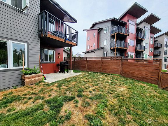 Convenient bottom corner unit- truly 0 step entrance to this 2019 modern 2 bed / 1 bath condo with full-size laundry and convenient parking space right outside. This is one of the largest condos in the complex. Features large radiant floor heated bathroom, modern kitchen with eating area, and living room looking out over protected Fishtrap Creek. Great layout to utilize the space and a movable kitchen island. Convenient location within walking distance to Lynden fairgrounds, restaurants, shopping, and a short drive to downtown Lynden & parks.