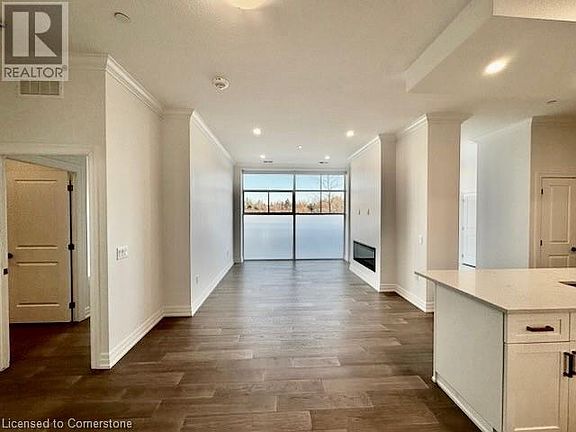 This stunning main floor suite features 1,544 sq ft of living area. Two main entries to your condo mean never having to take the elevator again. Nothing has been overlooked in this luxury condo with finishes such as quartz countertops, pot lighting, engineered hardwood flooring throughout, a large fireplace in the living room, and both bedrooms have walk-in closets. Enjoy a 5-piece ensuite in the primary bedroom w/jetted soaker tub, double vanities and heated porcelain floors for ultimate luxury. Also includes custom electric blinds with privacy film. In the Kitchen enjoy entertaining on the spacious quartz Island and includes stainless steel appliances & custom Barzotti cabinetry to complete the space! The 2nd bdrm features a walk-in closet and kitty corner 3pce bathroom w/spacious shower and heated porcelain floors. A huge fitness facility next to the suite features a golf simulator, guest suite, and a 13th-floor resident social lounge.