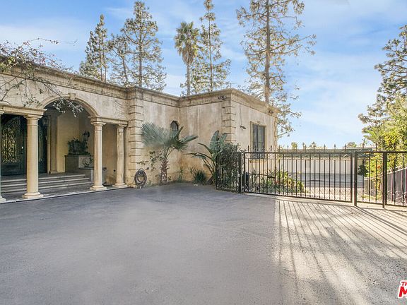 Rare Tuscan Villa with Tennis Court in Prestigious Trousdale Estates. This exceptional 0.66 acre property combines the timeless elegance of a single-story Tuscan villa with the rare luxury of an oversized professional-grade tennis court. The 5,081 sq. ft. At the heart of this estate is an exquisite single-story Tuscan villa spanning 5,081 sq. ft., blending timeless Mediterranean charm with modern sophistication. The home boasts 4 ensuite bedrooms, 6 bathrooms, and a welcoming gated driveway leading to a 3-car garage with ample additional parking. Upon entering, you are greeted by a grand foyer adorned with intricate crown molding and sparkling chandeliers, setting a tone of elegance and refinement.The open floor plan, complemented by French doors throughout, invites natural light into the home, enhancing its seamless flow and bright, airy ambiance. The state-of-the-art chef's kitchen, outfitted with top-tier Thermidor appliances, features 1,200 sq. ft. of marble and limestone countertops, centered around a striking blue Caesar stone island. Adjacent to the kitchen, a formal dining room, wet bar, and wine cellar make this home a true entertainer's dream.The luxurious master suite offers the ultimate retreat, complete with an office overlooking the backyard and pool, as well as separate his-and-her walk-in closets. The spa-like bathrooms feature double sinks, a steam sauna, a vanity, and serene garden views. Two additional spacious ensuite bedrooms and a guest suite with direct access to the pool and backyard ensure comfort for family and guests alike.The outdoor grounds are nothing short of spectacular. A sparkling pool, sundeck, and lush landscaping provide a serene escape, Perfect for both avid tennis enthusiasts and large-scale entertaining, the court is detached from the main house, ensuring privacy and versatility. With a fitness center perched above, it offers a space for recreation and exercise without disrupting the serenity of the main residence. This multifunctional property epitomizes the best of Beverly Hills luxury living, offering privacy, elegance, and convenience, just moments from Rodeo Drive and world-class dining and shopping.