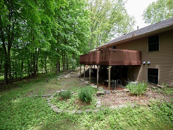 Charming 3 bedroom home on four wooded acres is perfect for the nature lover & those seeking a quiet retreat. The home was built in 1999 & features a vaulted ceiling in the living room wood floors & a fireplace. The efficient kitchen includes all appliances & an eating area overlooks the expansive deck & wooded back yard. Watch turkeys & deer while eating your meals. The primary bedroom offers a primary bathroom with a low threshold shower & whirlpool tub. Laundry is located in the lower level, along with water softener, wood burning stove, day light windows & patio. Pool table stays with the house. This property is close to the US 31 Bypass. St Joseph, MI & Notre Dame are less than 30 minutes away. Newer roof, propane heat, septic, well & shed.Home is wired for generator hook up.