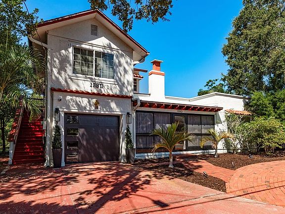 Experience the best of coastal living in the heart of Clearwater with this versatile, income-generating property, nestled within a serene tropical landscape. Ideal for investors, multi-generational living, or those seeking a live/work retreat, this rare gem features multiple residences, lush outdoor spaces, and direct access to the Pinellas Trail. The grounds feel like your own private resort, surrounded by mature shade oaks, swaying palms, and even your own mango tree. Brick walkways wind through cozy nooks and open gathering areas, perfect for enjoying Florida’s outdoor lifestyle. Designed with Spanish-inspired architecture, the main residence greets you with a circular brick driveway, clay tile roof accents, and a welcoming porch with Spanish tile flooring. Step inside through wood-framed French doors to a charming living room featuring hardwood floors and a classic fireplace. The adjacent dining room is flooded with natural light from a picture window overlooking a lush garden, while the fully renovated kitchen is both stylish and functional, boasting granite countertops, white shaker-style soft-close cabinetry, hammered copper dishwasher (2024), Induction range (2025) and a "smart" refrigerator (2025). A laundry/storage room includes a stacked washer/dryer, utility sink, and shelving. A leaded glass door leads you to the rear patio and garden, where a private hot tub awaits. The primary bedroom offers newer luxury vinyl flooring and a private sunroom perfect for a home office, yoga space, or quiet reading nook with direct yard access. The second bedroom connects to an updated bath with basket-weave stone tile flooring and a modern walk-in shower. Accessible from both inside the home and via a wide outdoor staircase, this bright and spacious second-floor suite is perfect as a primary ensuite, guest quarters, or rental unit. Features include an oversized private deck, kitchenette with butcher block counters, soft-close cabinetry, and stainless sink, Murphy Bed for flexible living and a full bath with tiled tub/shower combo. Across from the main house, a charming standalone cottage offers a bright, open living area with large sliding windows, tile countertops, ample kitchen storage, and space for dining/game area. There is also a private bedroom with walk-in closet and a full bath and private rear patio… perfect for guests, short-term rentals, or extended family stays. Features & Upgrades include high-efficiency mini-split HVAC systems in all residences, newer sewer lines and main water supply lines to both main house and cottage, a gas water heater (2019), Tesla charging station, and one-car garage with newer garage door. NO HOA. FLOOD ZONE X. This unmatched location is situated directly on the Pinellas Trail, enjoy 47 miles of scenic biking and walking from your backyard. Ride north to Downtown Dunedin’s shops, microbreweries, and farmers markets, or head south to historic Clearwater and world-famous Clearwater Beach. Just a block away, launch your kayak to explore uninhabited coastal islands or drop your boat in at the Seminole Boat Ramp. You're also minutes from award-winning beaches, premier golf courses, top-rated hospitals, airports, restaurants, retail, and live music venues. This is more than a home — it’s a lifestyle. Whether you're looking for a profitable investment, a multi-unit family property, or a peaceful tropical retreat, this Clearwater oasis has it all.