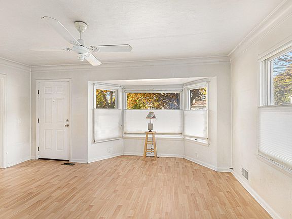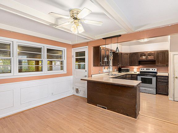 Fall in love with your new home! This home features a great layout and quiet back yard oasis. Entering the home you'll notice a spacious dining room leading into the kitchen. A large living room with a bay window provides plenty of natural light and room to entertain. The primary bedroom is huge with 3 closets and room to set up an office as well. A full bath and 2nd bedroom round out the mainfloor. Upstairs features knotty pine walls and ceiling and plenty of storage space and could function as office, craft room or unconventional bedroom. Out back you have a huge 3 seasons porch which leads out to the backyard, completely fenced with newer vinyl fencing and gates. Extra deep garage for storage. This home needs some updating and price reflects that. Come and visit the open house on Sunday, Nov. 9th. Offers due on Nov. 10th at noon.