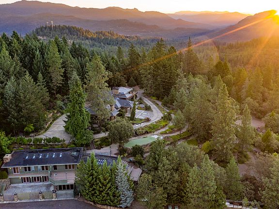 Stretching over pristine hillsides blanketed in oak savanna & evergreens, The Oaks is a 388-acre private paradise for outdoor recreation, entertaining & elegant living, w/ponds, gardens, miles of trails, hunting, access to public lands & a nearby recreational lot with boat launch on the Rogue. With floor-to-ceiling windows, artful touches of stained glass, slate & wood, the 8,498 SF main estate blends exquisitely in natural beauty. A grand entrance opens to a towering LR, library & large open kitchen. A spiral staircase leads to an expansive in/outdoor entertaining space. The master suite spans one end while the opposite wing has 4Bed/4Bath. A 5k+ SF recreation chalet overlooks a spectacular outdoor water feature that cascades into expansive zen gardens wrapped in sky & a breathtaking view of the Western Cascades & valley below. The property features 2nd & 3rd homes, shop & helipad. Located just outside Shady Cove, The Oaks is an easy commute to the conveniences of Medford.