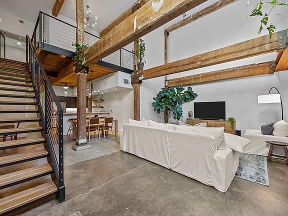 Experience riverfront living with historic character in this stunning one-bedroom loft at the Saxapahaw Historic Condos. Once part of the original Saxapahaw Cotton Mill, this beautifully restored brick warehouse now offers modern luxury within a setting rich with history and creativity. Step inside and you're greeted by soaring ceilings, exposed beams, and original brick walls that tell the story of the building's industrial past. Expansive windows bathe the space in natural light, overlooking the lush community gardens and the peaceful flow of the nearby Haw River. The open-concept living area provides an airy sense of space, ideal for both quiet evenings and effortless entertaining especially as this condo has the largest groundfloor patio in the C building. Brand new HVAC 2025!! Stand alone laundry room is unique to this unit! Extra assigned storage unit in the building as well! 2 assigned parking spaces, 41 and 16. The kitchen features modern cabinetry, stainless steel appliances, marble countertops and a sleek upbar that invites casual dining or conversation with friends. Upstairs, the loft-style bedroom feels both private and open, with a contemporary layout and generous storage. The updated bath complements the home's design with a clean, modern finish. Beyond your front door, enjoy all that Saxapahaw has to offer—live music at the Haw River Ballroom, farm-to-table dining at The Eddy Pub, and the vibrant Saxapahaw General Store. Take an evening stroll along the riverside trails, paddle on the Haw River, or simply relax in the shared courtyard gardens that weave through the property. Just a short drive from Chapel Hill, Carrboro, and Burlington, this home offers the perfect blend of small-town serenity and urban access. Combining architectural charm, community spirit, and scenic surroundings, this one-bedroom loft is a rare opportunity to own a piece of North Carolina's rich mill history—reimagined for modern living.