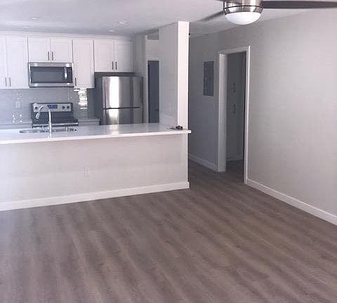 Fully remodeled 3-bedroom, 1-bathroom home featuring a modern open-concept design. The kitchen boasts a quartz countertop and stainless steel appliances, seamlessly opening up to the living room. Additional amenities include ceiling fans and newer laminate flooring throughout. Enjoy a prime location just minutes away from fantastic shops, restaurants, recreational parks, and golf courses. This charming Aircraft Manor home is conveniently situated near CSULB, schools, shopping centers, and major freeways. The owner pays for water, trash, and landscaping. The tenant is responsible for all other utilities