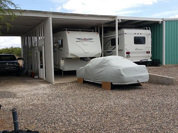 2.38 acres of horse property, with nice home, and outstanding buildings. Inc; 16x76 manufactured home, split bedroom design, 3 bedrooms, 2 baths. large rear patio, nice front entrance with private seating area. Picnic-family gathering area under big Mesquite for casual gatherings. Xtra large 30' by 40' all metal building with mezzanine/loft for additional storage has 1/2 bath, heavy electrical and water and septic plumbed. 3 additional 40' bays for RV storage, tractors, boats, projects. All with electric, water and septic. Separate septic system installed to service this area. all pipe fenced, with back yard privacy fenced. Room for chickens with chicken coop, and room for horses, or 4H projects. Home has vaulted ceilings, new laminate flooring, newer carpets. Baths have been updated, storage closets. Master bedroom with large closet, 3/4 walk-in shower in bath. 2 car attached carport. Propane gas furnace, with 3.5 ton A/C unit, and evap cooler still in place. Beautiful big shade trees, room to stretch.