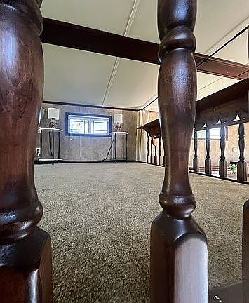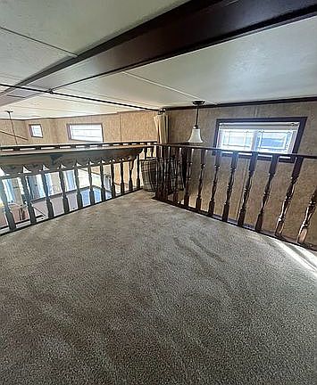 Stairs, loft, and bedroom are carpeted.