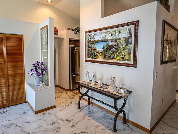 A must see. This 3 bedroom, 2 bath home is a rare find. Start with your morning coffee on the large covered lanai overlooking the gorgeous in-ground pool and hot tub, with new screens (2018), new deck (2019) and new Pentair pool pump heater (2019). Kitchen was totally remodeled in 2018 with granite countertops, wood cabinetry and all stainless steel appliances replaced in 2019 (Refrigerator Samsung, Stove Frigidaire, Dishwasher Frigidaire, Microwave Frigidaire). Dinette just off kitchen for that daily meal, or formal dining room for those larger family gatherings. Master bedroom, with en suite bath and walk in closet, has large slider to pool and hot tub area. Split bedrooms 2 and 3 share a bath that has pool access and bedroom 3 has slider leading to lanai. Inside laundry. New marble tile throughout the house (2018) keeps the flow alive. Living room and formal dining room lead out to lanai through French doors. Beautiful foyer entrance. AC - 2012, Water heater - 2010 and exterior paint 2012. Landscaped all around with stunning flowers and shrubbery. Partially fenced and no neighbors behind. You don't want to miss this opportunity located in a smaller community. It won't last long.