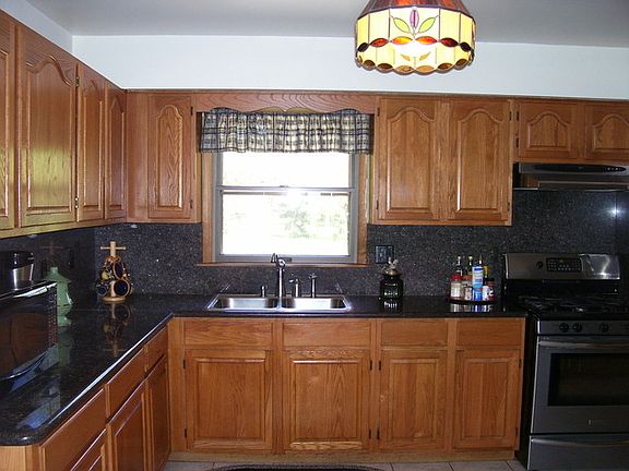 True ranch home located on Tranquil 1+ acre wooded double lot in unincorporated Mokena! Outside, enjoy the view from the custom slate deck w/wrought iron railings. Inside this 3BR 1.5BA home enjoy many updated features. Kitchen offers oak cabinets w/granite counter tops plus newer oven/range & washer/dryer. Both bathrooms have been updated w/fixtures and marble title. Great home on a beautiful lot!