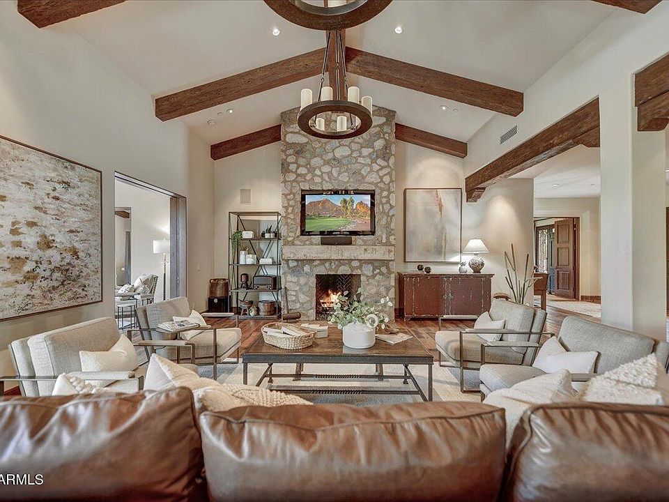 This refined CSE Silverleaf Casita is sensible sophistication at its finest. The Casitas are modeled after the Silverleaf clubhouse, eminent in style and design for the most discerning homeowner close to the clubhouse. Single story relaxed ranch uses a mix of materials and influences bringing a fresh twist to Southwest style. An entertaining dream with open great room floor plan, Fabulous indoor-outdoor living with telescoping glass doors to the outdoor living spaces and backing to an open wash, desirable southwest exposure featuring an alfresco outdoor room with fireplace, pool with water feature and spa, lounge area, eat in outdoor kitchen, firepit with sitting area. Bringing nature indoors with reclaimed oak flooring and indigenous stone throughout... used to clad fireplaces both indoors and out, hand-hewn wood beams, knotty alder cabinetry, and copper sinks and faucets all add to the home's distinctive character. Eat in kitchen island boasting Viking and SubZero appliances, with stylish copper vent, with an appropriate back kitchen with wine fridge, coffee maker, microwave and refrigerator. Abounding with exclusive finishes including hand-woven Spanish cotton upholstered bath accent walls finished with large Clavos, copper vanity and bucket sink, rawhide shades top chic iron scones, herringbone and brick lay tile flooring in baths, exquisite quartz and travertine slab countertops. Pristine two car garage and Lutron lighting system. Located in the coveted 32 home cove, conveniently located just off the drive to the Silverleaf clubhouse.