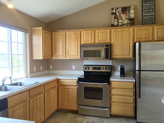 Nicely cared for with open concept. Kitchen and dining area with vaulted ceilings have breakfast bar, extra large pantry, built-in desk and tile floors throughout. Stainless steel appliances stay. Master has walk-in closet and vaulted ceiling with dual sinks and large closet in bathroom. Unfinished basement with washer and dryer hook-ups. Nicely landscaped yard has privacy fence, sprinkler system, and front patio. Large family room with newer flooring and corner gas fireplace. Finished garage with extension for extra storage. Security system installed, whole house audio system, tons of storage space. Millard schools. Close to parks and walking trail.
