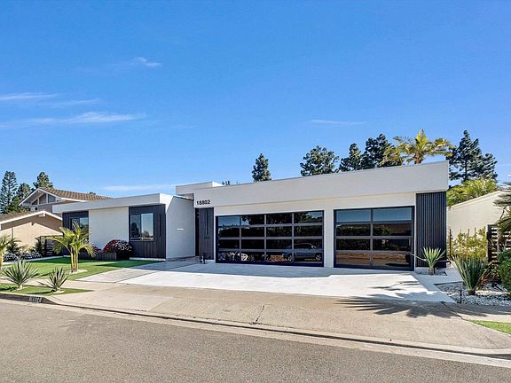 A stunning architectural masterpiece blending modern design with luxury comfort. This fully renovated single-story home showcases soaring ceilings, sleek porcelain floors, and an open-concept great room that flows seamlessly to an entertainer’s patio through massive glass doors. The gourmet kitchen features custom cabinetry, waterfall marble counters, and designer lighting. The primary suite offers a spa-inspired bath with freestanding tub, rainfall shower, and LED backlit mirrors, plus a custom-built walk-in closet. Every detail—from the linear LED fixtures to gold-accented hardware—reflects sophisticated craftsmanship. Low-maintenance landscaping, sleek curb appeal, and a modern glass garage door complete this exceptional residence—perfectly designed for today’s lifest