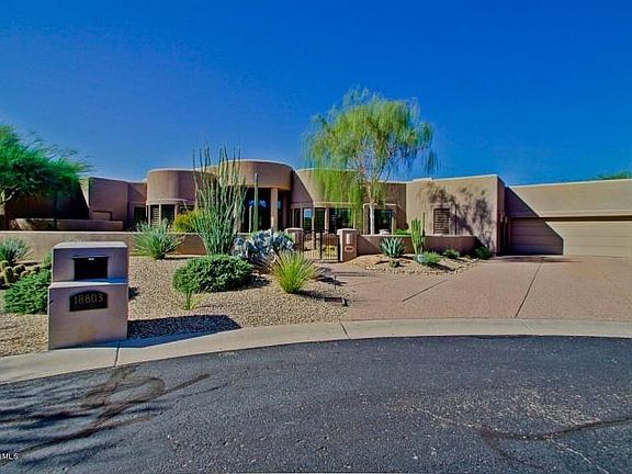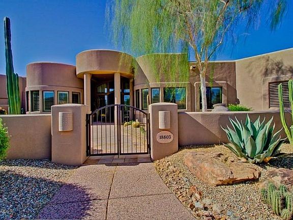 Elegantly blended into its lush Sonoran surroundings, this territorial beauty is nestled in a cul-de-sac. The gathering room features a tiled fireplace and entertainment wall as a focal point and sun kissed windows showcasing spectacular golf course views. This room provides an easy transition into the kitchen and breakfast room with its upscale appointments, gorgeous granite, wood ceilings and handsome hardwood cabinetry. The formal dining room has a tiled coffer in the circular ceiling and a tiled buffet wall. Comfortable office/den has built in desk, bookcases and cabinets and a beamed an ceiling. Each of the bedrooms are spacious and have ensuite baths - a great place for hosting family and friends. Outdoor amenities include water feature, sitting walls, a kiva fireplace and a BBQ.