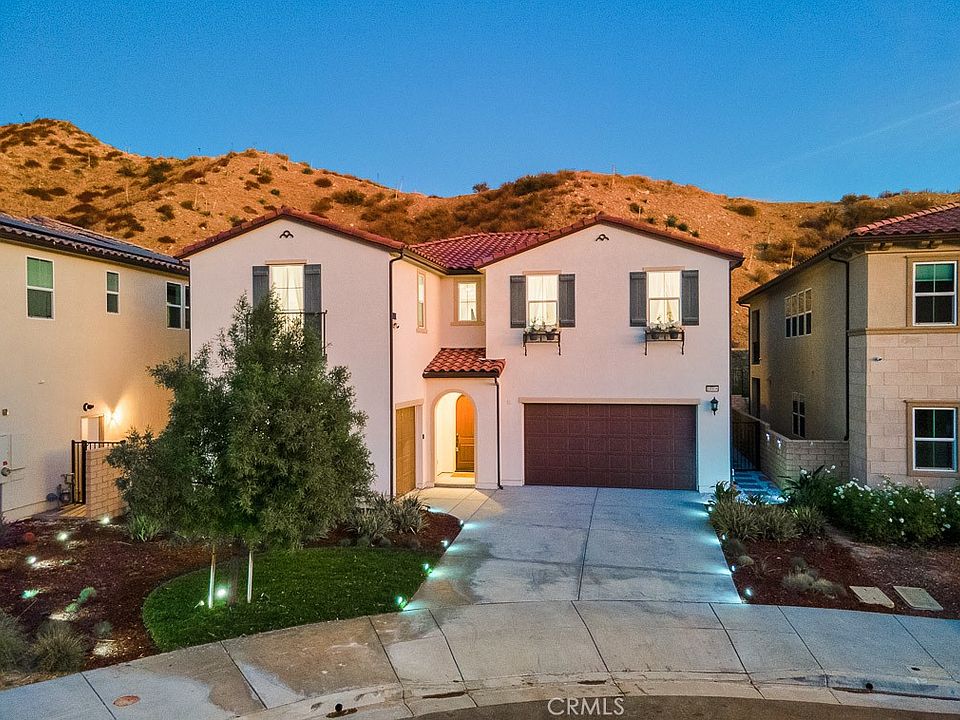 **Rare Opportunity in the Highly Sought-After Plum Canyon Community of Santa Clarita!** Discover luxury living in this stunning 5-bedroom, 4-bathroom home, built in 2020, and nestled at the end of a cul-de-sac. Offering over 3,000 square feet of modern elegance, this property is designed to impress with its spacious layout, premium upgrades, and desirable location. Step into the grand foyer with soaring ceilings, leading to an open floor plan that seamlessly connects the kitchen, dining, and living areas. The gourmet kitchen is a chef's dream, featuring granite countertops, upgraded Jenn-Air appliances, a farmhouse sink, pendant lighting, and a large island perfect for entertaining. Oversized windows and an extra-long sliding door flood the space with natural light. The first floor also offers an office nook, a convenient downstairs bedroom with a custom barn door, and a full bathroom, perfect for guests or multi-generational living. Upstairs, the primary suite showcases hillside views, a barn door leading to the spa-like en-suite bathroom, and an oversized walk-in closet. A secondary bedroom with its own private bathroom, a loft with flexible living space, and a laundry room with built-in cabinets and sink further enhance the home’s functionality. Additional highlights include no Mello Roos, a 3-car garage, solar panels and private backyard with no rear neighbors, newly installed grass, and a new sprinkler system. The community offers fantastic amenities such as a pool, spa, and BBQ area. With a prime location near top-rated schools, Plum Canyon Park and Skyline Ranch Plaza—featuring Starbucks, popular restaurants, a grocery store and more—this home offers convenience, recreation, and the charm of one of Santa Clarita's most desirable neighborhoods. Don’t let this incredible home slip away!