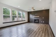 Cozy shiplap-accented fireplace wallQuartz countertopsOpen-concept main levelSpacious primary suiteAbundance of natural lightDual sinksSpacious yard