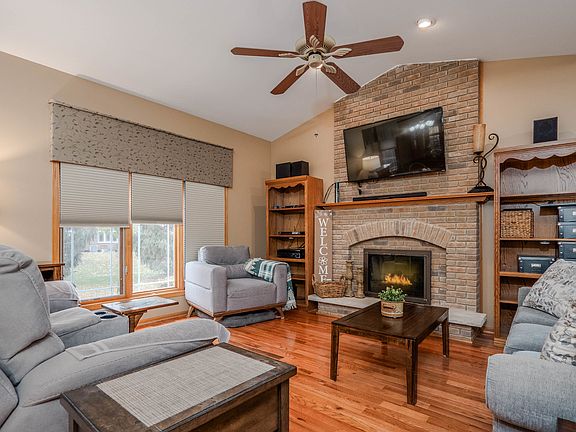 Traditional brick fireplaceBeautiful landscapingFull finished basementMature treesNeutral decorCoffee barPlenty of storage