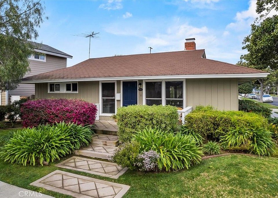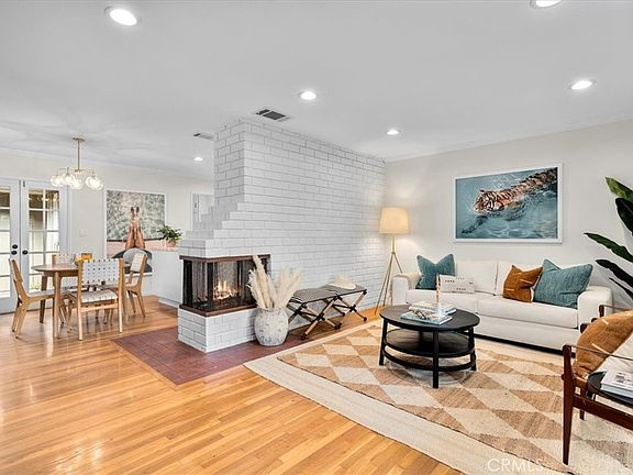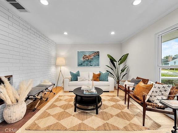 A stunning white brick original mid-century style fireplace serves as a centerpiece. It creates a cozy atmosphere in the living room while dividing the kitchen and dining room from the living area. The kitchen features fresh white-painted wood cabinets and brand-new black hardware, giving the space a modern and updated look. One of the highlights of this property is the beautiful backyard, complete with a lush grassy lawn and mature avocado and lemon trees - perfect for those who love to cook with fresh ingredients. The backyard provides a tranquil oasis and an ideal place to relax and unwind. French doors from the dining room open up to the backyard, providing seamless indoor-outdoor living. Next to the kitchen are a laundry area, the second bathroom, and another door leading outside to the backyard. A detached 2-car garage provides ample storage space and plenty of street parking for guests. Located in the highly desirable neighborhood of Los Altos in Long Beach, this home is a must-see for anyone looking for a one-story property that has been lightly updated but still has some original charm and is in a fantastic location. Don't miss out on the opportunity to make this charming house your dream home.