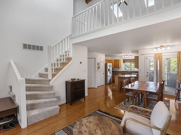 MOVE IN READY!! Open concept! 2 Story Townhouse 2 Primary Bedroom Suites Plus Loft, 2 Baths, Attached Garage with Large Backyard and Screened Porch on Cul-de-sac. Main level with hardwood floors, Spacious Living Room with fireplace with Bay Window, kitchen with solid wood cabinets, granite counters, pantry, Stainless Steel appliances, Main level primary bedroom with walk-in closet, and laundry room. Upper floor has huge loft with beamed cathedral ceiling and 2 new skylights, 2nd bedroom Suite with Bath. Remote blinds. Newly Painted. Newer carpet on upper floor and stairs. Large backyard with screened porch, wrap around deck and patio. Roof (2007), Furnace, A/C and Water heater (2018). 13 Month Home Warranty offered!. Low Taxes, Low Association fees! Lake Central Schools.