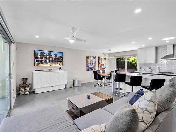 This beautifully reimagined South Palm Springs condo exudes sophistication and modern style. Taken down to the studs and completely rebuilt, every inch has been thoughtfully redesigned with high-quality finishes and attention to detail. The floor plan was expertly reconfigured to maximize both space and the stunning mountain views from every angle, creating a bright, open, and airy living environment.One of the standout features is the expansive, private backyard--walled, gated, and designed for true indoor-outdoor living. It includes a cozy built-in firepit, perfect for relaxing under the desert stars or entertaining guests in style. The property also includes two covered carports, offering convenience and privacy rarely found at this price point.Coco Cabana in Palm Springs is a boutique mid-century modern community nestled in the desirable South Palm Springs area. Originally constructed in 1955 as a garden apartment hotel by architect Charles W. Doty, it was converted into 31 condominiums in the late 1970s. The complex spans five acres of lushly landscaped grounds and offers amenities such as a pool, spa, and two lighted tennis courts. Coco Cabana's location offers stunning views of the San Jacinto Mountains and is within walking distance to hiking trails, shopping, and dining options. It's a serene retreat that embodies the quintessential Palm Springs lifestyle, combining historical significance with modern-day amenitiesThe property is fee-simple, meaning you own the land beneath your unit, and it allows for short term vacation rentals with a minimum stay of seven days, making it appealing for both homeowners and investors. Coco Cabana's blend of historical significance, modern amenities, and prime South Palm Springs location make it a sought-after community for those looking to experience the quintessential Palm Springs lifestyle.