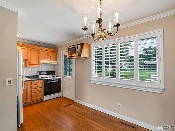 Welcome to this charming 3-bedroom, 2-bathroom home nestled in the highly sought-after Rockwood School District! This beautifully maintained property features elegant white oak floors, plantation shutters, and crown molding. The updated hall bath boasts custom hickory cabinets, a marble-surround tub/shower, and tile flooring. The kitchen offers maple cabinetry with crown molding, a gas range, and opens to a cozy breakfast room. Enjoy outdoor living in the fully fenced backyard, complete with a newer patio, storm door, and storage shed. The finished lower level includes a spacious family room, a third bedroom, a completely renovated full bath, laundry room, and LVP flooring. Additional highlights include Anderson windows, plantation shutters, six-panel doors throughout, newer HVAC, and a one-car insulated garage. This home is a true gem—don’t miss it!