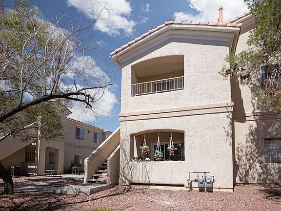 Welcome to this charming 2-bedroom, 2-bathroom home located in a gated community in North Las Vegas. This second-floor unit features a master bedroom with a walk-in closet, perfect for storing all your belongings. Enjoy the community pool, spa, and exercise room for relaxation and fitness. The house boasts ceiling fans and wood flooring in the common areas, adding a touch of elegance to the space. Don't miss out on this opportunity to make this lovely house your new home.